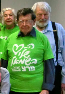 The green T-shirts mentioned, which our visiting delegation on the recent Israel Symposium also wore at times (as pictured here), bore the Hebrew slogan more accurately translated as “My heart is on the left” with a lower line reading “Meretz: the left of Israel.” Among the people we met was a Member of Knesset who represents a left political party that is not Meretz. Dov Hanin is a highly respected MK of the Hadash party; he is the sole Jewish MK (among four in the current Knesset) of a longstanding movement that is ideologically bi-national and not Zionist. It has in common with Meretz a commitment to a two-state solution for Israel and the Palestinians, but Hanin sees Meretz as not speaking adequately to the Arab citizens of Israel.