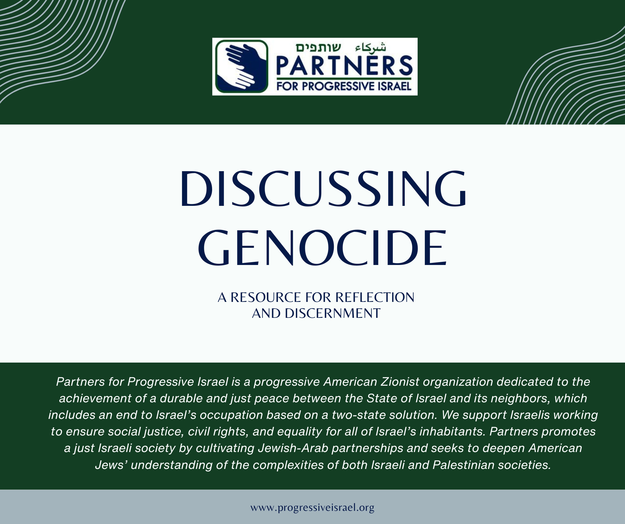 We realize that among Jews who have built their political home amongst a broader progressive movement, there is particular pain in acknowledging that a genocide is taking place in Gaza. Many of us get “stuck” along certain lines of thinking and feeling – confusion, denial, shame, heartbreak, and so much more. However, we cannot let our grief and our deep distress keep us from continuing to shy away from the catastrophe occurring every day in Gaza. The pain of acknowledging this is acute. And it cannot stand in the way of telling the truth about what we are collectively witnessing. At Partners, we are sharing this resource after a long process of discernment and reflection, to help our community move through our fear, our grief, and our hesitancy to confront this reality head-on.